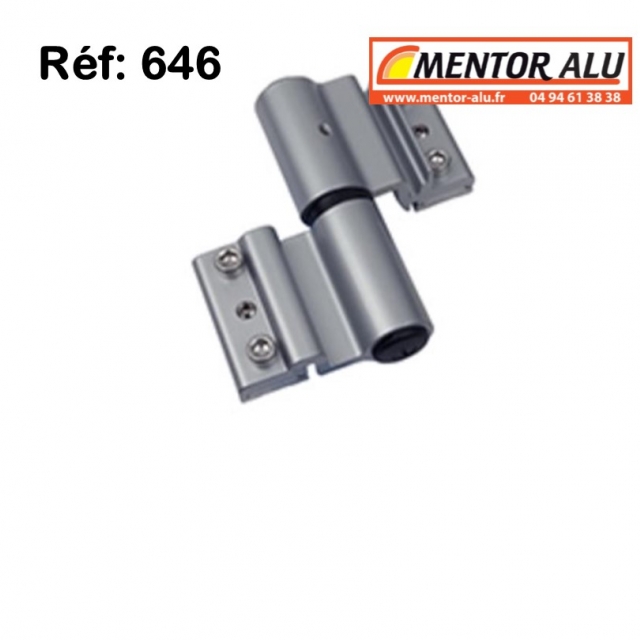 Corps de paumelle et contre-plaques en aluminium extrudé, douille de centrage supérieure en zamac, pré-monté sur un pivot en acier inox, douille de centrage inférieur en Delrin.